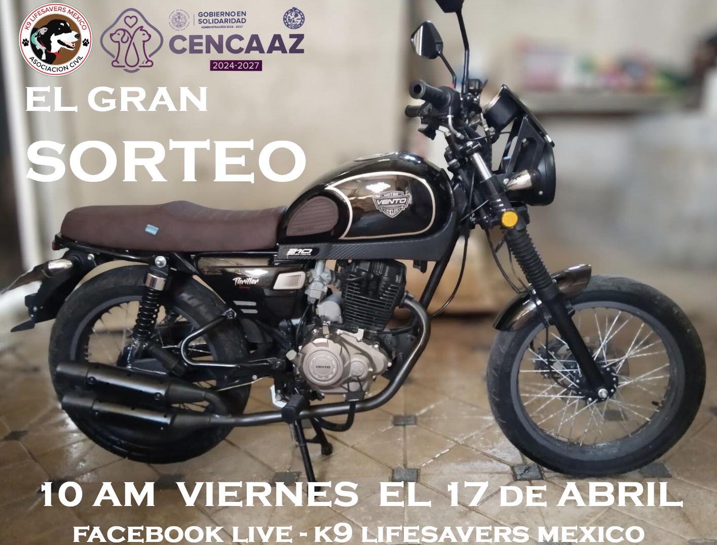 K9 Lifesavers Mexico AC and CENCAAZ Playa del Carmen are proud to announce that the official drawing of our Raffle with a Cause for the VENTO THRILLER 210cc 2025 motorcycle will take place this FRIDAY APRIL 17th at 10:00am.